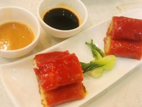 福晋轩酒家美食! 图一是红米肠。他会给你两个酱料,一个是花生酱,一个是酱油。一份有6小段,红米肠里面的煎蛋脆脆的里面有虾仁,猪肉,还有一些蔬菜,总的来说还可以吧,就是有点油。 图二是瑶柱蛋白炒饭,价钱...