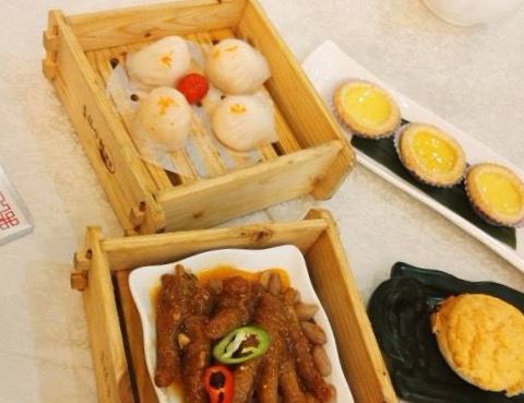 福晋轩酒家美食! 图一是红米肠。他会给你两个酱料,一个是花生酱,一个是酱油。一份有6小段,红米肠里面的煎蛋脆脆的里面有虾仁,猪肉,还有一些蔬菜,总的来说还可以吧,就是有点油。 图二是瑶柱蛋白炒饭,价钱略贵38块钱一份,但很多。饭很香,每粒饭都是分开的,它的蛋白是切成小块放在里面,还会有些豆子,配上凤爪底下的汁是绝配。 图三是虾饺。一份4个。每个他上面都会给你撒一点蟹籽,里面的虾仁是满足地不能在满足,猪肉碎是很少很少的,一颗一颗完整的虾仁QQ弹弹的口感。 图四是凤爪。它下面还会垫一点花生。他的凤爪是那种一咬就脱骨的那种,不过我吃着有点不知道是什么味道,有点奇怪就是了 图五是蛋挞。他的蛋挞皮是很软的,到嘴里就化的那种,中间的馅也是入口即化。 图六中有个菠萝油忘记拍了,一份3个,会配3片黄油,表面是那种酥酥的口感。虽然没去香港吃过正宗的菠萝油,但是我为这家菠萝油强烈打call。 喜欢的也可以来尝一下。