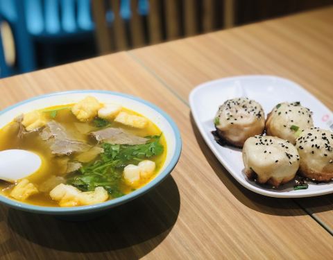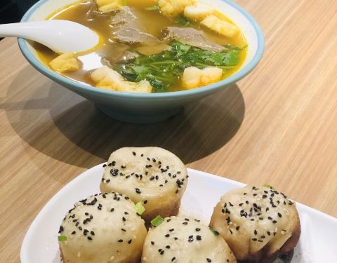 小杨生煎真的是越来越贵了吖,还好有积分和优惠券,团了大虾生煎➕牛肉汤套餐,性价比杠杠的😄 中午堂食的人满多的,不过大家都自觉隔开,等餐过程也不脱口罩😷; 大虾还是第一次吃,里面🈶️三个虾仁,不过口感不Q弹吖,其实还是喜欢鲜肉的!
