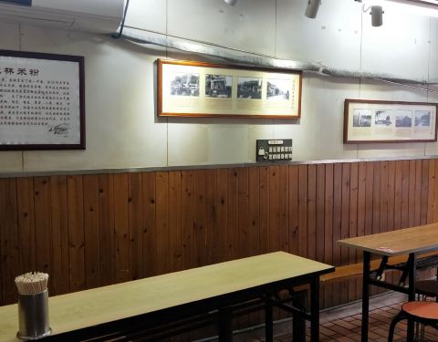 - 点了两个经典桂林米粉,二两粉8元一碗。 一看就是老店,味道不错,自己加配料,店里还挂了很多获奖金牌
