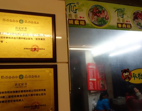 同来米粉在当地非常有名,在这里能尝到地道的桂林米粉。这家店面平平淡淡,店内却挂满了许多荣誉奖牌。这里米粉式样丰富,价格实惠而且人气高,许多当地人也会来这里吃。
