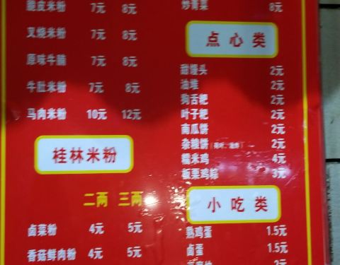 桂林老字号米粉之一,深藏在百货大楼后面的巷子里。招牌的桂林特色粉卤水味很香,配菜很多,加点黄瓜丝吃味道会很清爽。牛腩粉味道一般,汤不是很浓郁有点油。