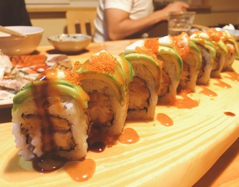 餐厅位于一条小巷中,夜幕降临时,深夜食堂的感觉迎面而来。走进店内,吧台、酒柜、矮桌、榻榻米,还有店家用心收集来的和式摆件以及店内暖黄的灯光,每一处都让人觉得温馨而又舒适。这里的日式酒种类非常齐全,其中朝日啤酒和俏雅梅子酒都非常不错,日式厚蛋烧、三文鱼刺身、芥末章鱼都是必点。