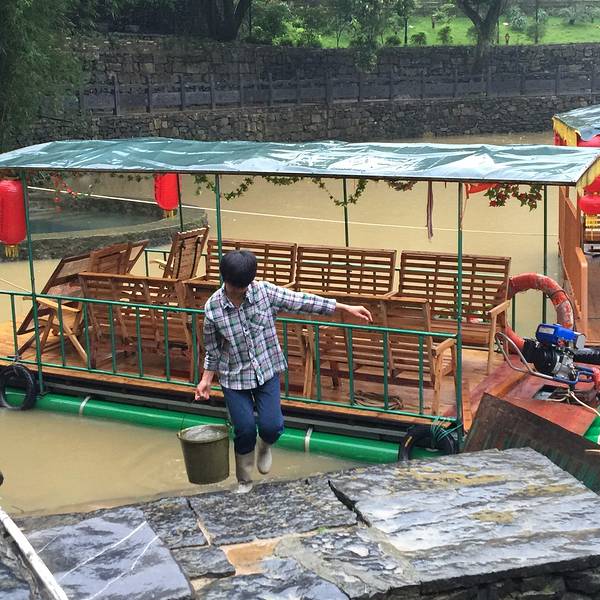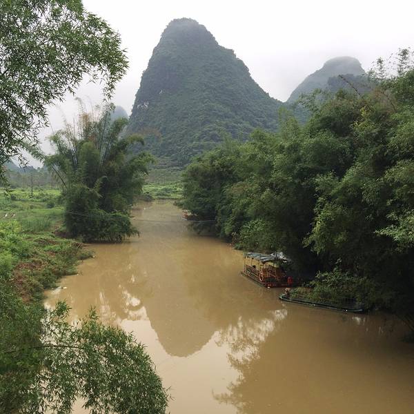 我们返回客栈,把行李带上,在附近的莫老爷饭庄用餐。室内环境让人避开了炎炎烈日,但可惜没有空调,大家都只能靠几个大风扇乘凉。 有些菜品都无法供应,只好在推荐下点了几道。 香芋扣肉,稍微甜了一些,容易让人发腻。豆豉蒸鱼,鱼肉紧致,但稍有些泥土的腥气。口感最佳的是这道炒笋片,油很大,但味道很棒。 加上酒水和主食,两人消费约110元。 用餐完毕,在客栈老板的指引下,我们抄小路沿河回到古戏台,此行结束。