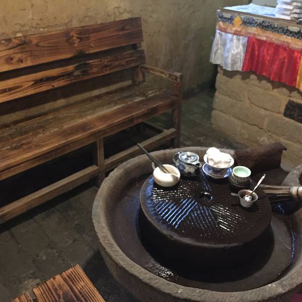 从东门楼进的黄姚古镇,被门楼外近处的莫老爷饭庄分店的造型所吸引,太有特色了是不?进得东门楼不远就发现了这家莫老爷饭庄总店,虽房子上半部分也是土砖,但店内面积却大多了,是古镇里比较大的饭店了。