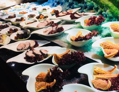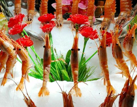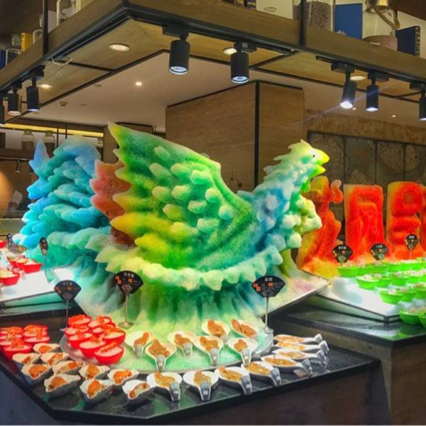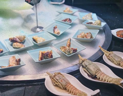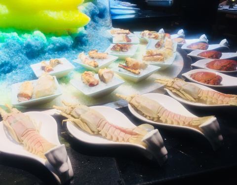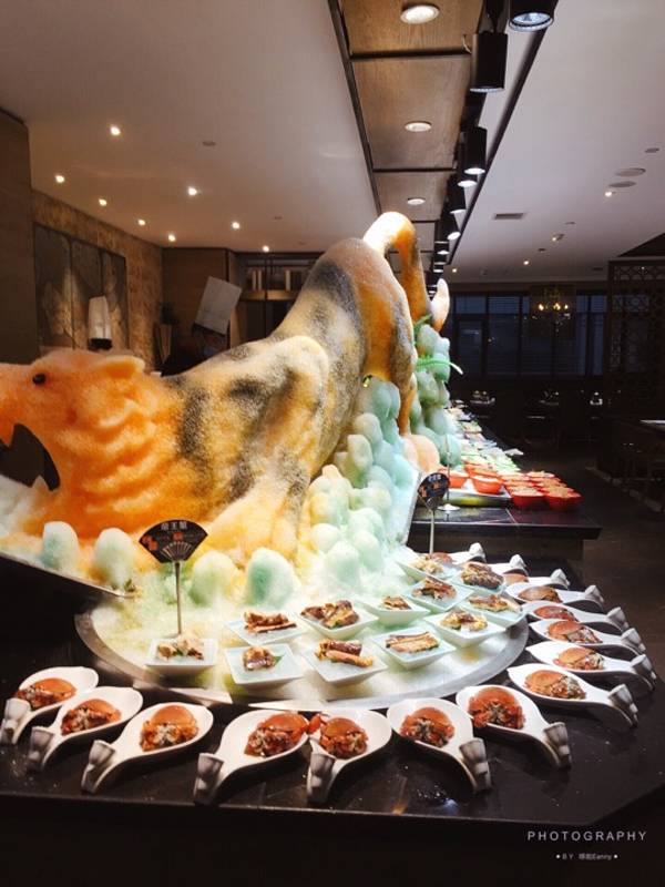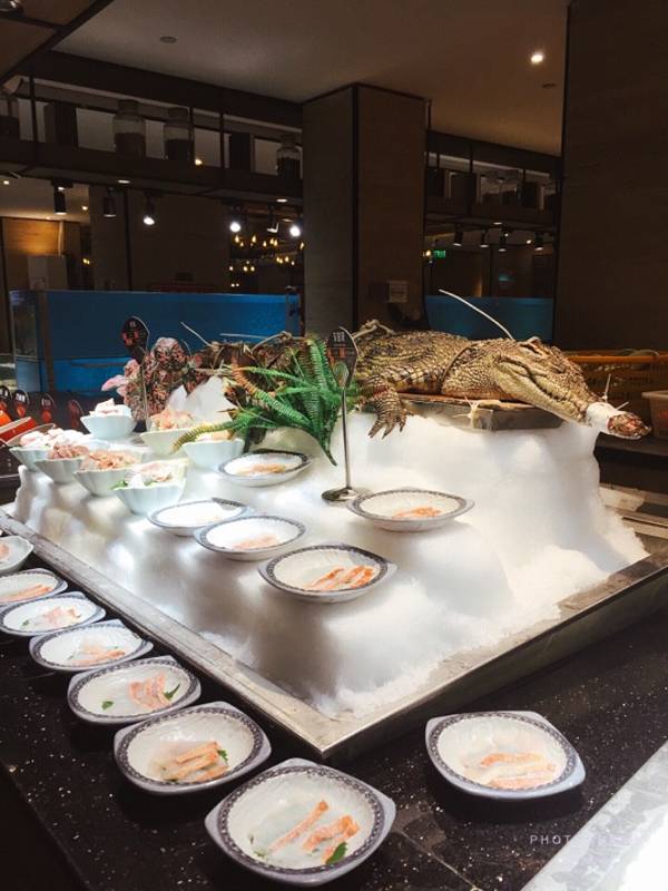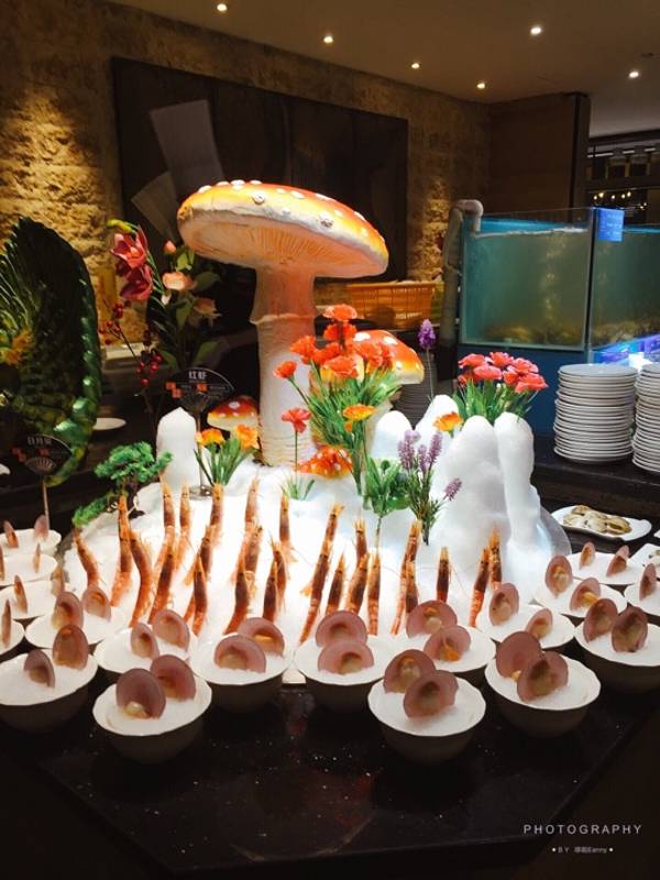 艺术感十足的自助餐厅,满堂海鲜盛宴。