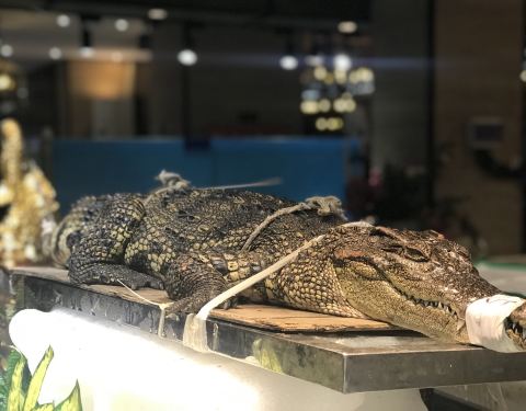 悦鼎会5月份刚好过了五周年,餐厅也是全面升级,从空间到格局到菜品都上升不小,进门就看到只大鳄鱼,让人印象深刻。