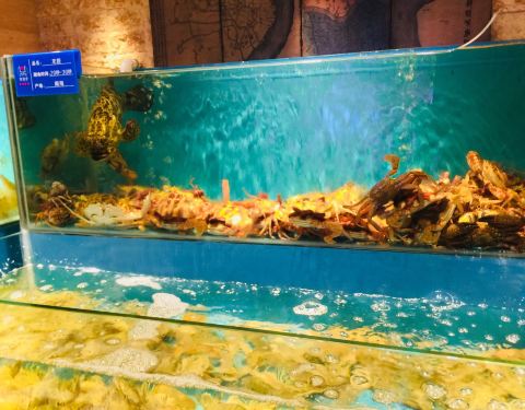 海产品丰富,鳄鱼🐊,海胆,海星,澳洲龙虾?...位于莲花路口地铁站出口,走进来像是来到海底世界,五彩斑斓的灯光,上二楼可以看到各种海鲜姿造,冰雕雪雕。
