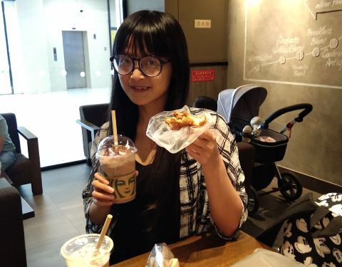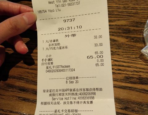 昨天的第二顿晚饭就在星巴克解决了,喝的星冰乐,吃的隔壁巴黎贝甜面包哈哈哈。 不花钱的晚饭很赞啊,嗯因为有人发了卡,一百的星巴克卡200的巴黎贝甜卡,那么那个人提了个建议说来顿不要钱的晚餐怎么样,那我肯定同意啊,本来也就不是我的卡,我只是坑过来拿着玩玩吼吼。 第一次点单和服务员姐姐重复两遍巧克力星冰乐,她还是点错了单子上打了39的一款,我们卡里钱不够贴了四块,然后一看单子不对,再去问,然后再退再收,这下卡里还多两块了,可惜饮料都做好了,不然升个杯用掉就好了。