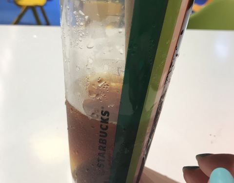 小祖宗在旁边玩,我们累得要睡着,看边上就是星爸爸,买了他们新出的冰调系列,难喝的不是一点点,一股咳嗽药水味。先生问我美式是不是坏掉啦?哪能是酸的?原来里面有一大块柠檬,发明这口味的家伙真的是蛮独特...