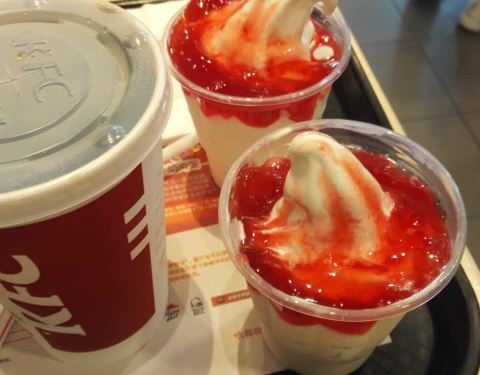 肯德基搞活动,甜筒买一送一的时候买的,还是非常划算的,而且味道还是不错的,草莓双旋口味的,口感非常好,软软的,然后底下的壳特别好玩儿,可以慢慢的吃。最近好像肯德基活动满多的,还有大薯,鸡块的买一送一。肯德基搞活动,甜筒买一送一的时候买的,还是非常划算的,而且味道还是不错的,草莓双旋口味的,口感非常好,软软的,然后底下的壳特别好玩儿,可以慢慢的吃。最近好像肯德基活动满多的,还有大薯,鸡块的买一送一。