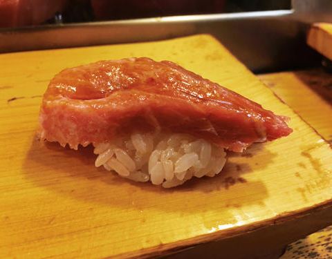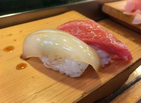 吃了一轮已经很撑了,味道都很不错很新鲜,但最后我还是单加了一个大拖罗,约50块人民币一粒。东京非常著名的寿司店 价格虽然不菲 确实非常美味。