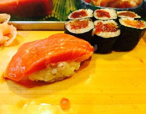 金枪鱼寿司超级好吃。由于吃一个做一个,没有特意拍照。很不错的饭店,环境好,味道好,服务好