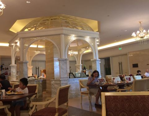 午后入住酒店,趁着二楼中餐厅还未下班赶紧吃口饭,结果刚开始动筷子,办理会员的业务员就开始滔滔不绝的给你介绍业务要求你办理会员。好生相劝才安稳吃完饭。 晚餐是房费包含的自助餐,只是没吃好也没吃饱,又回到二楼点茶食吧,要了说不能送房间,也不能打包,实在难为我们带孩子来体验的 总之,吃饭是个事,二楼中餐前台接待的服务也是不敢恭维 真心希望与之星级能匹配