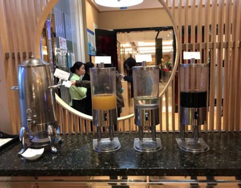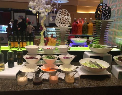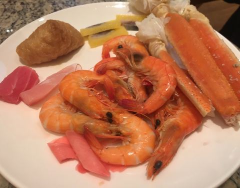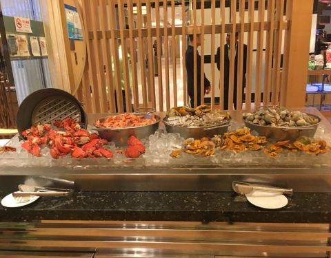 没有想到会在这里吃个自助餐,晚上六点多正好高峰时间,菜品比较丰富,各种海鲜刺身大闸蟹,炒菜不喜欢,饮料也一般,没有鲜榨果汁,水果不多。