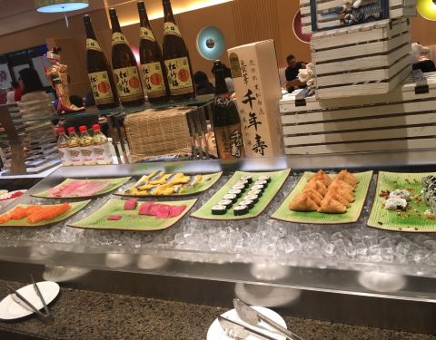 - ...正好高峰时间,菜品比较丰富,各种海鲜刺身大闸蟹,炒菜不喜欢,饮料也一般,没有鲜榨果汁,水果不多