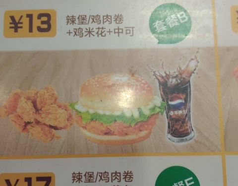 买了个10块和20块套餐,汉堡只有一点点大,脆皮鸡也只有这一点大。服务质量一般,环境一般。