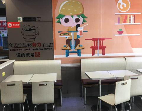 - 店里生意很好,饭点店员很忙。特别喜欢吃玉米杯和骨肉相连。在临海,华莱士一直吃的是这家