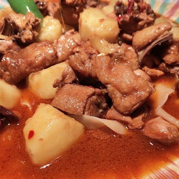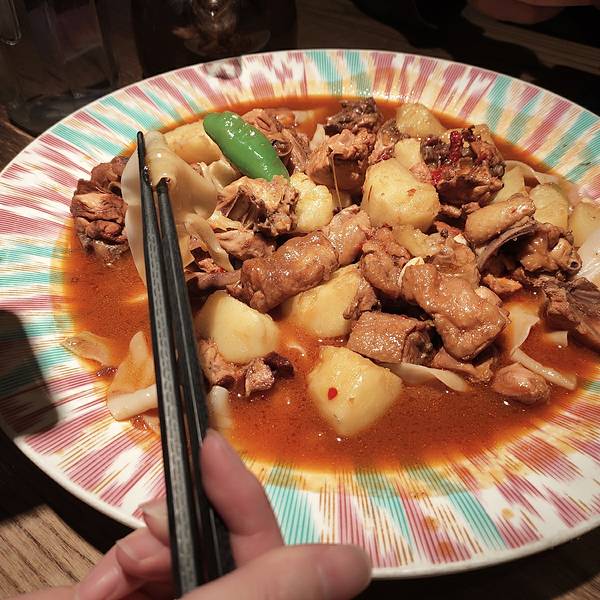 大盘鸡:色泽口感都很棒,最喜欢吃大盘鸡里面的木耳洋葱哈哈,从小就这样却不怎么吃肉,吃大盘鸡也是为了吃大盘鸡里的烩面,伴着大盘鸡的汤汁,劲道有味。
