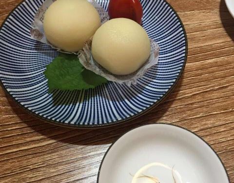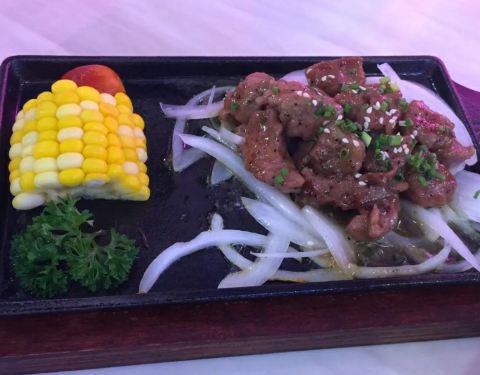 黄油小香菇,不很油,还挺好吃。北纬牛舌饭,这个是主食,上来之后趁热吃,口感更好