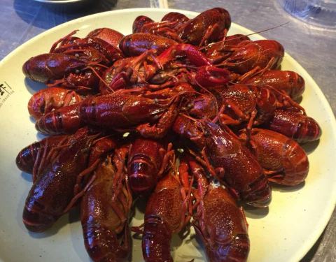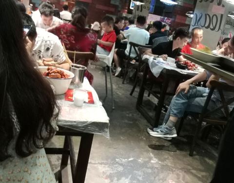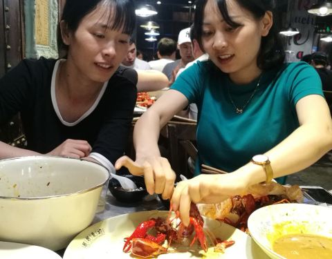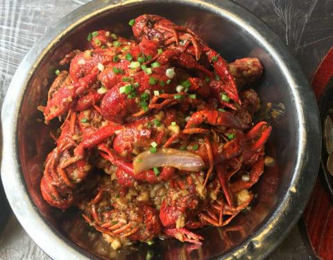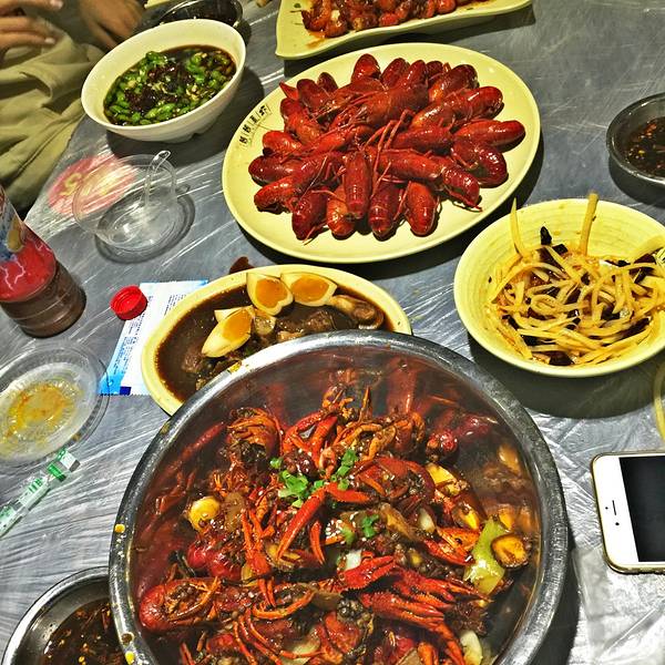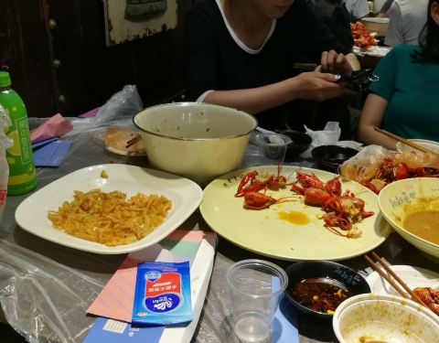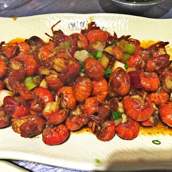 过了饭点来的好处就是不用排队,但是店里用餐的人很多。现在不是小龙虾当季了,但是蒸虾的虾肉还是很满很新鲜的,搭配的蘸料酸酸辣辣的,很好吃