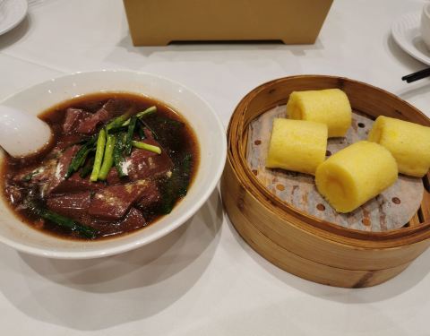 周末又过来下午茶,14点后入座点心半价,感觉菜单有点微调了,之前吃过想再点的几个点心好像没见在菜单里了。 这次试了其他的,蒸猪肚、咸鱼肉饼饭、黄金卷都不错,咸鱼肉饼饭好抵食,中点,满满的一碗饭,肉饼很有咸鱼味
