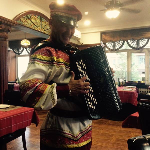 满洲里的西餐厅人均基本就在80左右,是可以接受的。拉手风琴的俄罗斯大叔是很有礼貌的,一定要给他个大大的赞哦!!