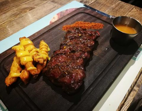 其实我家牛排万达店一开始开业的时候档次比现在也就是19年2月高。不知道什么原因现在不如以前。菜品数量少了。很多菜品和莱山的我家牛排差不多。不过价钱貌似也比一开始开业的时候便宜了。