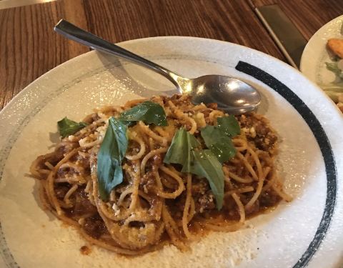 点了凯撒沙拉,肉酱意面,奶油通心粉,提拉米苏,凯撒沙拉好大一盘,配的面包干,奶酪碎和生火腿,味道不错,意面和通心粉都挺好吃的,尤其是通心粉,酱汁都在通心粉里,非常浓郁,提苏米拉非常棒,服务也很好,完美的一顿。