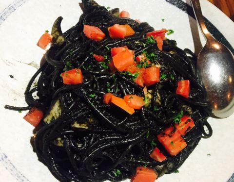 很黑暗,口感没问题很好,墨鱼也很嫩,就是会粘连牙齿上很多黑色墨鱼汁,建议女生来就餐点此菜不要打唇彩了