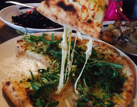 这家店装修时尚摩登,环境很棒。餐品主打各种口味的意式薄饼披萨,其中推荐烟熏火鸡披萨。另外凯撒沙拉、提拉米苏、意式肉酱面也很受欢迎。