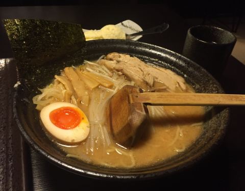 看完《你的名字》后映景来吃个日式拉面 从合生汇还是有点距离,时间还早,慢慢悠悠走过去 客人不多,很安静 点完餐后,静等上菜 味增拉面,35米 先来一口汤,汤底很浓郁,带着一丝丝甜味 拉面很Q弹,豆芽...看完《你的名字》后映景来吃个日式拉面 从合生汇还是有点距离,时间还早,慢慢悠悠走过去 客人不多,很安静 点完餐后,静等上菜 味增拉面,35米 先来一口汤,汤底很浓郁,带着一丝丝甜味 拉面很Q弹,豆芽爽嫩,笋也很嫩,半个鸡蛋,鸡蛋黄红红的,有点流质凝固的感觉,蛮好吃的 叉烧应该是整碗拉面里的败笔吧,量少,煮的也太过酥烂了,有点碎碎的了,旁边还带了不少肥肉部分 一口汤,一口面,总的来说拉面还是不错的,性价比也高 烤鸡肉串,12米 蛮大一串的,鸡肉很嫩,上面的酱汁浓稠,很是满意 土豆泥,8米 就是单纯的土豆和鸡蛋混合而成,味道比较单一 总体还是家不错的拉面店,上菜完毕后,还会帮你拉上竹帘,很有私密性
