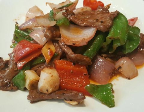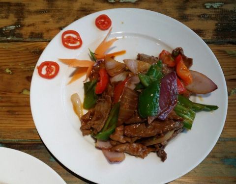 - 小店里的豆花牛肉很不错,还有虾仁滑蛋、泡椒兔丁和烧椒茄子,都很好吃哦