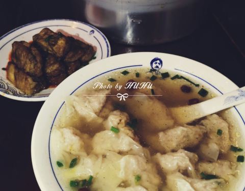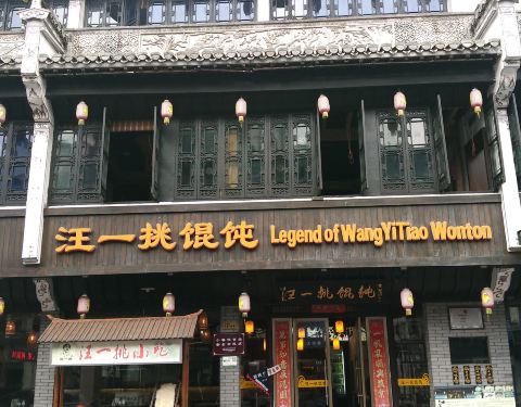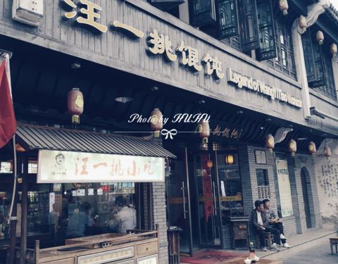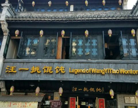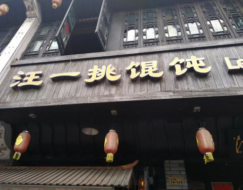 跑去逛屯溪老街, 之前就在网上看到介绍, 屯溪老街也好, 整个黄山貌似馄饨都很有名。 到了屯溪老街看到馄饨很多, 什么一担、老馄饨等等, 感觉花色很多。 各种做法多少都有些出入。 跑去比较网上热门的馄饨店...跑去逛屯溪老街, 之前就在网上看到介绍, 屯溪老街也好, 整个黄山貌似馄饨都很有名。 到了屯溪老街看到馄饨很多, 什么一担、老馄饨等等, 感觉花色很多。 各种做法多少都有些出入。 跑去比较网上热门的馄饨店, 就是汪一挑了。 看湖南卫视之前还和汪一挑合作, 由汪一挑本人亲自出马, 做馄饨给明星们吃。 现在在老街的店里, 还挂着硕大的液晶屏电视, 播放着这个拍摄过程。 里面明星不少, 最抢眼的是林青霞, 没想到还出镜了, 非常意外。 跑到老街逛累了, 也特意找的他家, 据说是总店, 非常有名。 进去看到来的游客不少, 很多也是慕名而来。 门口放着两个馄饨器具, 估计是以前挑在路上卖的器具。 看他家环境整洁, 花色还很多, 要了他家特色鸡肉馄饨, 感觉馄饨大小介于小馄饨和大馄饨之间, 更偏向于小馄饨的类型。 一碗馄饨里面有不少调味料, 看还有油条干, 平时非常喜欢吃油条, 而且觉得他家这种做法, 非常能体现馄饨的鲜味, 感觉很不错的。 看他家来吃的人, 也都在看墙上挂着的大电视, 里面滚送播放着明星们品尝各种美食。 送上来的馄饨味道也很鲜美, 吃着感觉很可口, 他家装修也很简单, 主要是干净, 非常赞的!