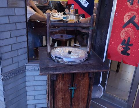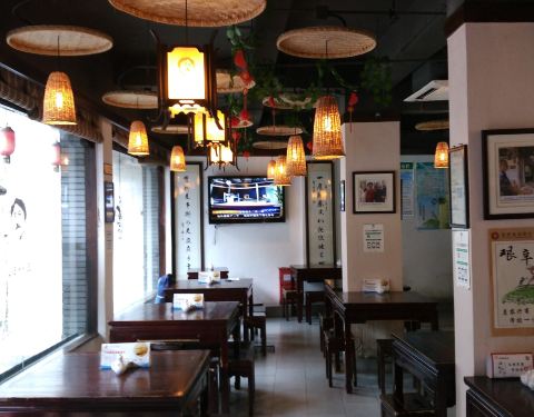 - 装修复古,门口有两个老式挑担,老板最早挑着担子沿街贩卖,“汪一挑”的名号就是这么来的