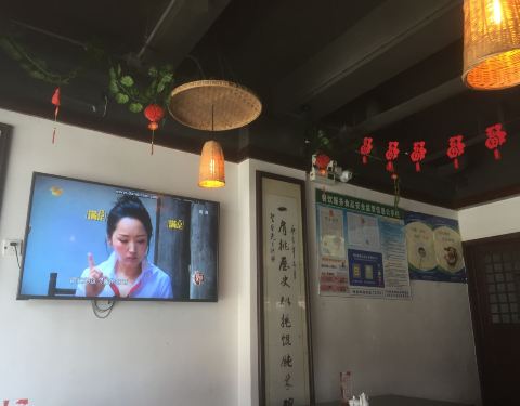 - 看他家来吃的人, 也都在看墙上挂着的大电视, 里面滚送播放着明星们品尝各种美食