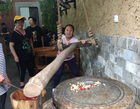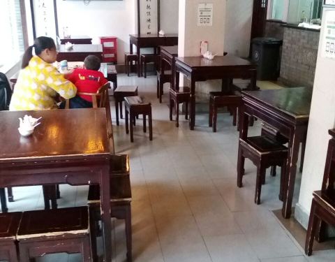 - 品尝后,觉得葛粉圆子既糯又滑,很有特色,确实很好吃;八仙桌、方凳子,给人一种怀旧的感觉