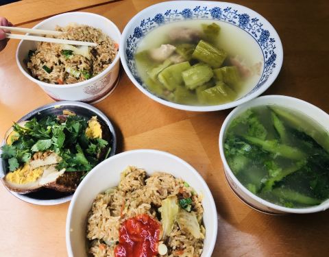 在京闽中心酒店和麦当劳之间的这条小路上,一个小区里,路边就可以看到招牌。周边来吃的人挺多的,也有很多来打包回去的。主食就是咸饭,是典型的厦门特色口味。汤有萝卜排骨汤,苦瓜排骨汤,小肠汤,海蛎汤,还有卤肉卤猪皮,卤蛋,卤豆干等卤味。味道还不错的。