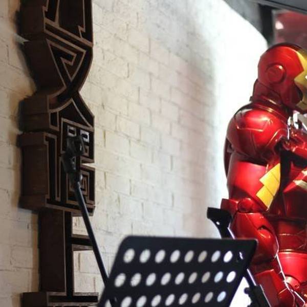 乐队表演助兴,装修格调复古结合酷炫动漫。