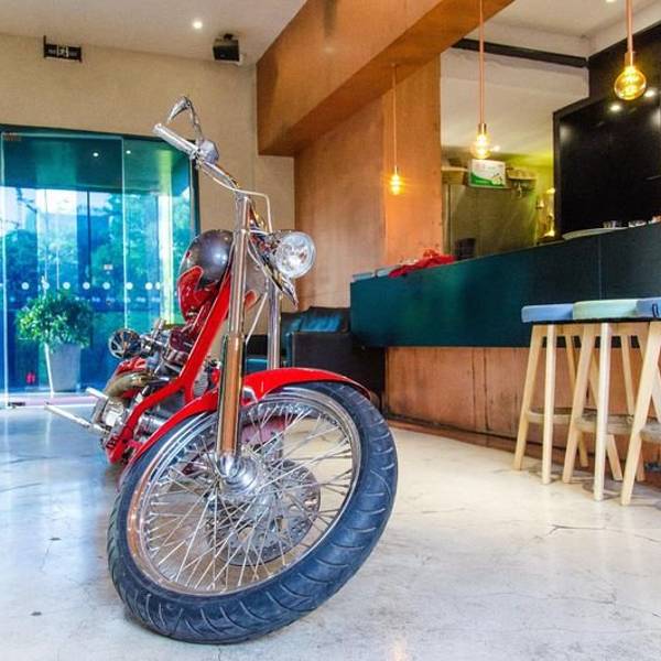 环境真的好,安静,阳光洒进来,人不多。吃的也挺好,干净,不是那种中看不中吃的类型。好像三楼可以搞活动,没上去看。门厅进来的摩托车也不错。