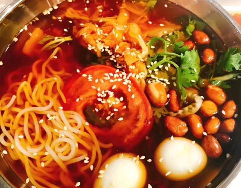 这家烤肉店在真如古镇兰溪路北石路交口的西南角,主打是东北烤肉。看到他家的朝鲜冷面在上海排名靠前,就跑来尝尝。味道酸甜可口,面条很有嚼劲,很有韧性。