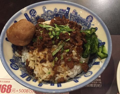 度小月是一家名副其实的台湾百年老店,创始于1895年,是风行台湾的品牌小吃。 自从进驻天津恒隆之后,店门前的食客就的川流不息的热闹个不行。 头顶上孔明灯样式的红灯笼最是鲜艳显眼,上面写满了吉祥的祝福,远远地就...度小月是一家名副其实的台湾百年老店,创始于1895年,是风行台湾的品牌小吃。 自从进驻天津恒隆之后,店门前的食客就的川流不息的热闹个不行。 头顶上孔明灯样式的红灯笼最是鲜艳显眼,上面写满了吉祥的祝福,远远地就能明显的看到并快速找到他家。 菜单很简单,上菜速度很快,菜的品种多是以台湾小吃的形式呈现。 担仔面,热珍珠奶茶,热兰香金橘茶,巧手花枝丸,五香排骨酥,招牌黄金虾卷:口感是外脆里软,里头除了有虾还有马蹄碎。 舒活鸡丝鱼子沙拉 百年传承肉燥饭(¥18.00)腌黄瓜甜甜的,肉臊很细腻,又不是很油。