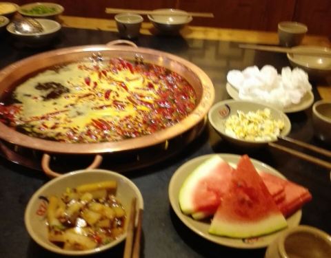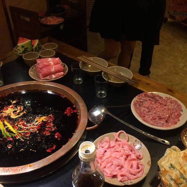 火锅几种不同口味和特色的汤底,用料讲究,味道不算很辣,越涮越香。酥肉味道很好,餐厅提供免费的苦荞茶,新鲜味美的几种水果免费享用,综合评价不错。