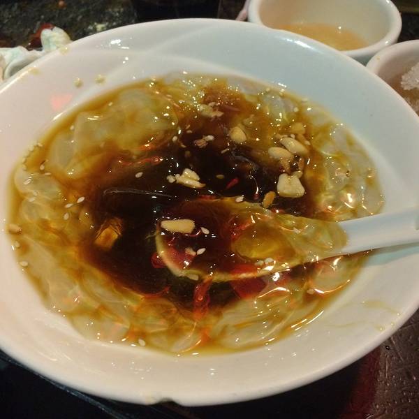 晚上去吃的火锅,因为和好几个同事一起去吃的,所以点的菜比较多。超爱吃酥肉,完美下酒菜。成都特色红糖粑粑。火锅滚了,开吃。吃完再来一碗冰冰粉,每次吃的时候都挺爽的,但是第二天起来肯定要滑肠。
