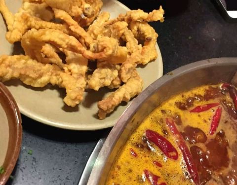一家曾经上过“舌尖上的中国”的火锅店,味道应该不会错,品尝之后更有惊喜,点了菌汤鸳鸯锅,红汤涮肉,菌汤涮蔬菜,中辣味道,吃过之后很舒服。