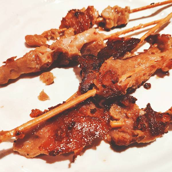 自助晚餐的菜品种类繁多,其中烧烤肉串有鱿鱼串、鸡肉串和兔肉串。酒店门口左右分布立有两座石狮,尽显威严