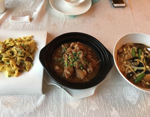 住宿时吃一顿午餐,性价比还可以。环境好,服务不错,还有免费的高粱茶?毛血旺量足,有肥肠鱿鱼虾等,油一看就干净,如果粉丝换成宽粉就好了,有点咸。雁北烩菜巨赞,好吃。有个凉粉馒头?太干了,面一般。没照菜。住宿时吃一顿午餐,性价比还可以。环境好,服务不错,还有免费的高粱茶?毛血旺量足,有肥肠鱿鱼虾等,油一看就干净,如果粉丝换成宽粉就好了,有点咸。雁北烩菜巨赞,好吃。有个凉粉馒头?太干了,面一般。没照菜。