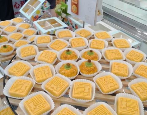 - ...在月饼都出炉了,有试吃漂亮的摆盘,他家的绿豆糕蛋黄酥月饼很不错,面包种类还蛮多的,生意非常的好