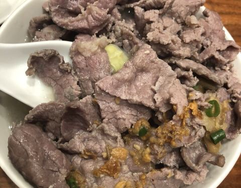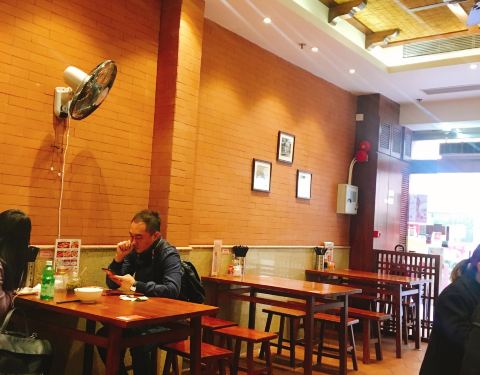 一家连锁店。牛肉挺嫩的,上来还是红色的,热汤浸熟了。肠粉配的芝麻酱甜酱很香。蚝仔咸鲜娃娃菜甜嫩味道棒极了!这样的一餐吃的很舒服!