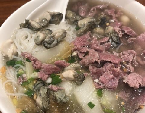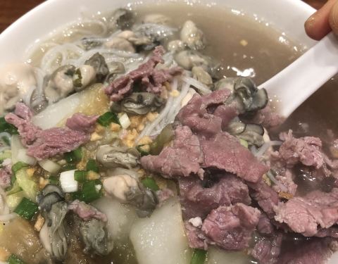 - 几乎每次都吃这种粉配不同的肉类,小蚝仔很鲜嫩,牛肉烫一下还有微红,肉质很嫩的。十分满足